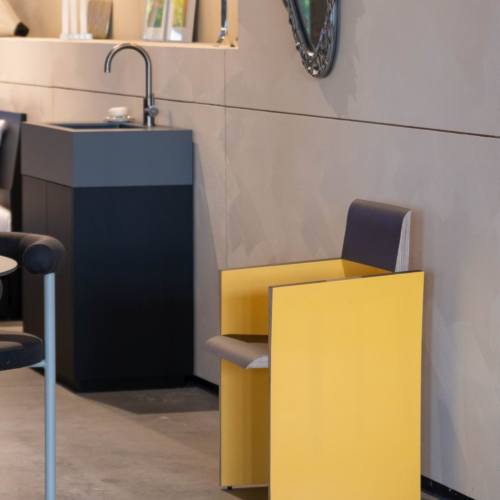 Cada objeto, creado con superficies de Arpa®, FENIX®, Formica®, Homapal® y Getacore®, destaca por su innovación y sofisticación, potenciando el uso de nuestros materiales premium y el diálogo creativo entre ellos.