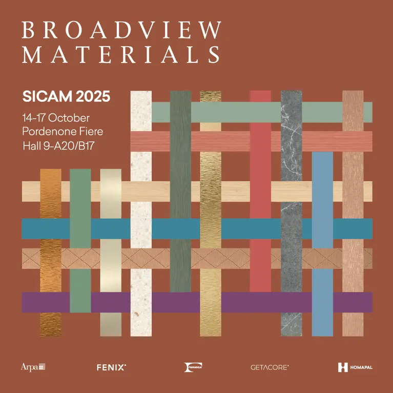 FENIX®, Arpa®, y Formica® —que forman parte de Broadview Materials junto con Homapal® y Getacore®— se dan cita en SICAM 2025, reafirmando una visión integrada de materiales, superficies y soluciones innovadoras, además de presentar algunas importantes novedades de sus productos.